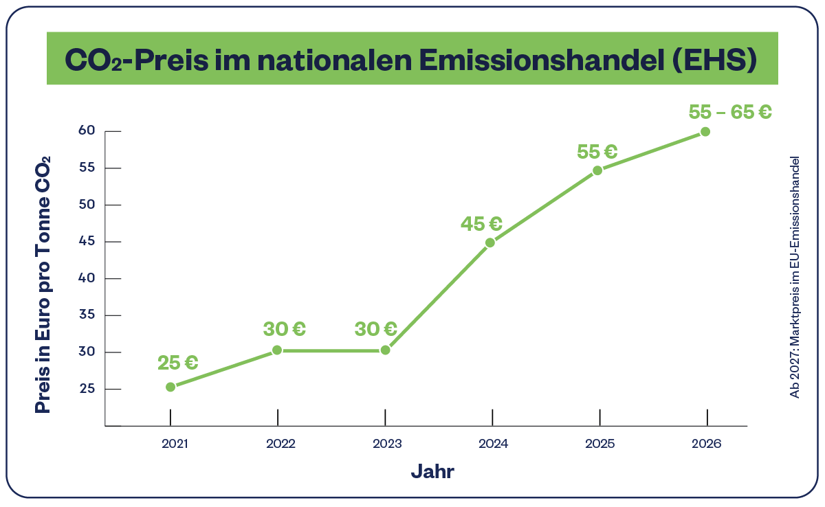 Zusätzlicher Kostentreiber ist der CO₂-Preis, der kontinuierlich steigt: